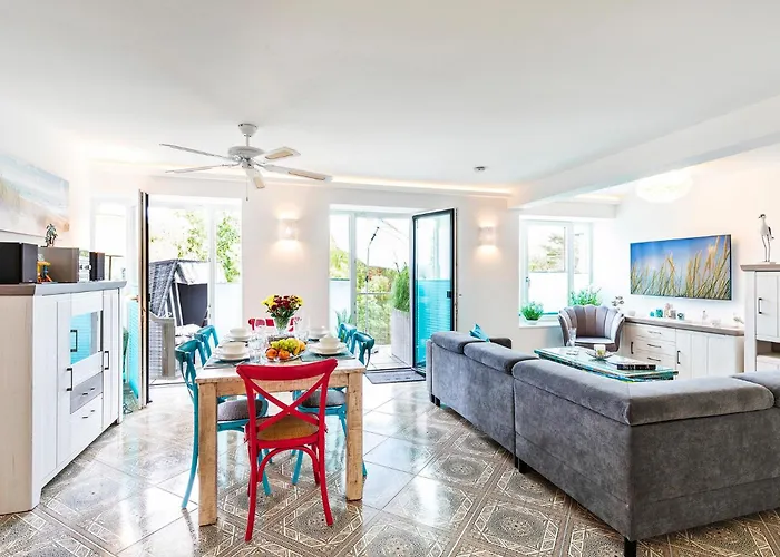 Το Fewo Prora - Strandmuschel είναι ένα παραθαλάσσιο διαμέρισμα που βρίσκεται στην πόλη Binz μόλις 10 λεπτά με τα πόδια από Μουσείο Erlebnismuseum Wasserwelt. Έχει παροχές τσάι/καφέ, χώρο καθιστικού και τηλεόραση επίπεδης οθόνης με δορυφορικά κανάλια καθώς πλήρως εξοπλισμένη κουζίνα εξοπλισμένη με ψυγείο, φούρνο και σκεύη κουζίνας.